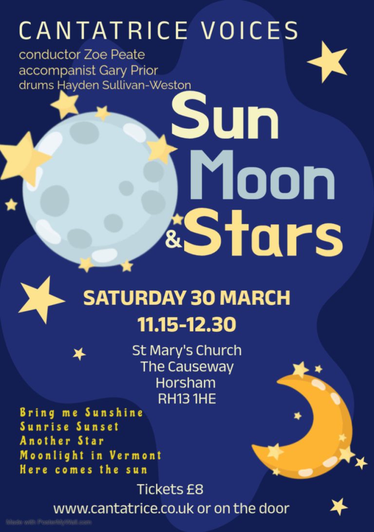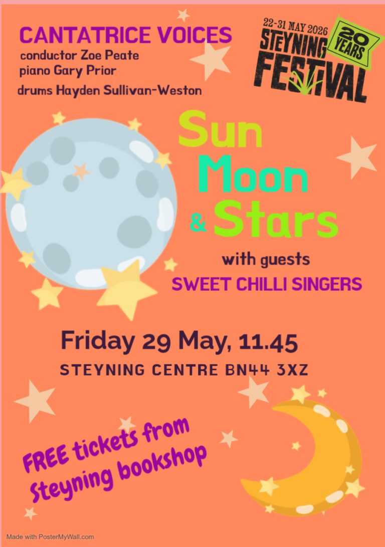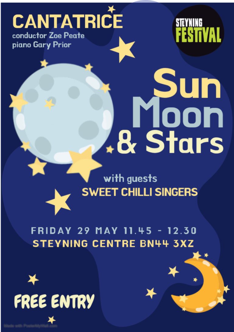 Cantatrice present this late morning concert as part of the Steyning Festival 2026 and our performance will include Fly me to the Moon, Bring me Sunshine & Evergreen from ‘A Star is Born’
